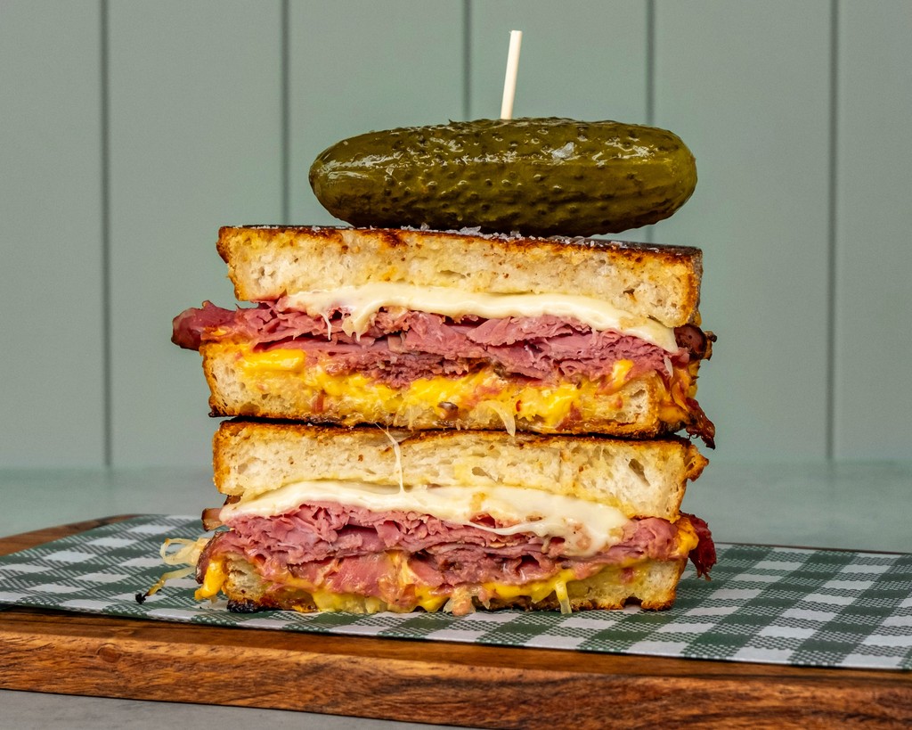 Beef pastrami, sauerkraut, Swiss and American cheese, Uncle Tony's signature sauce on sourdough